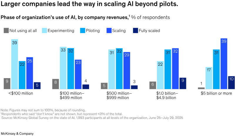 A McKinsey survey shows that 88% of organizations are now using AI in one or more business functions, and 20% in more than five functions.