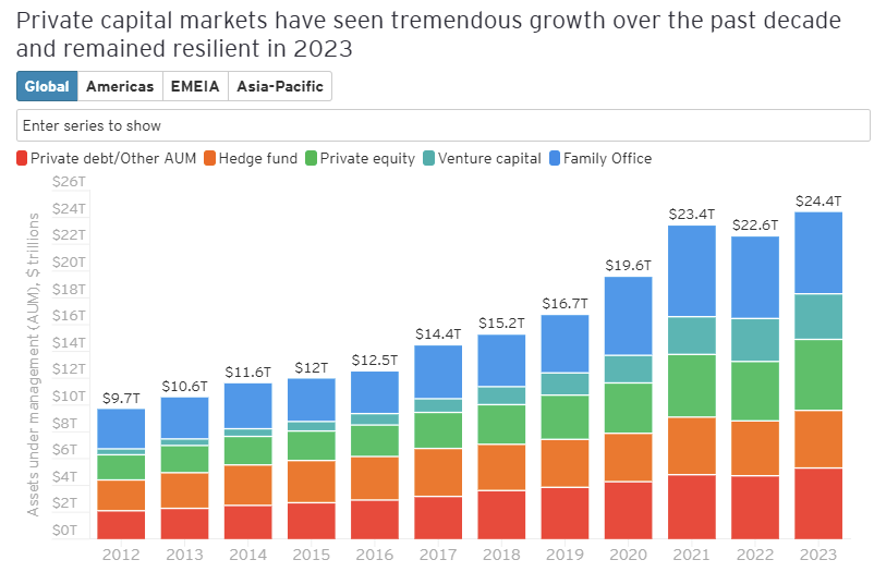 According to EY, approximately US$24.4 trillion of capital is invested in the private market, and this value continues to grow.